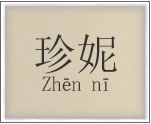 Jenny – brzmi bardzo podobnie. Jenny – 珍妮 Zhen-ni. Imię przetłumaczone fonetycznie Zhen = rzadki, drogocenny; Ni = dziewczynka.