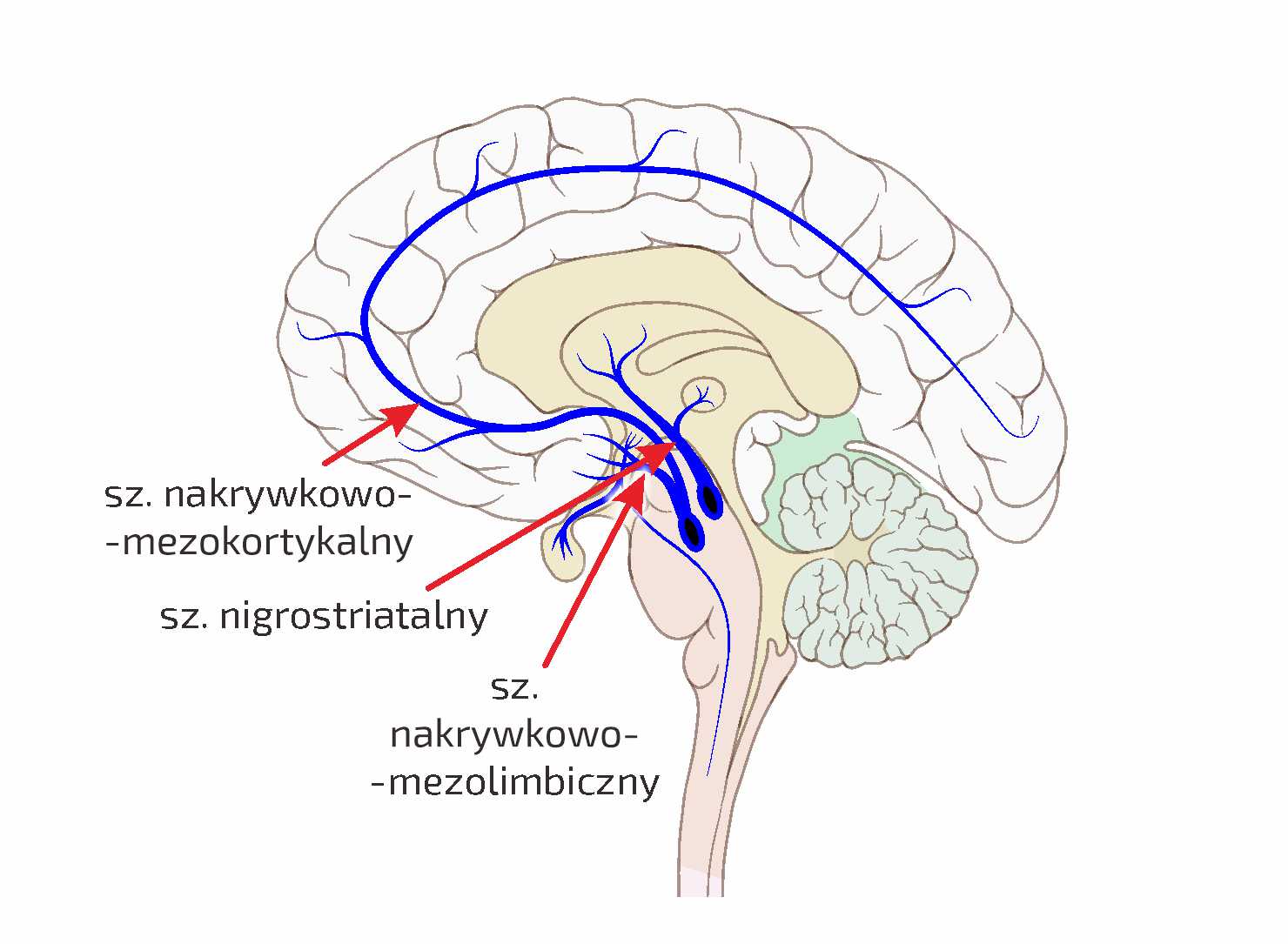Schemat ideowy pokazuje tzw. szlak nakrywkowo-mezokortykalny, który powstaje w wyniku socjalizacji: zaprogramowania naszego mózgu tzw. oprogramowaniem kulturowym.